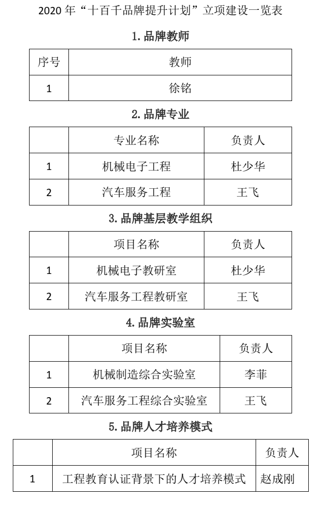 2020年“十百千品牌提升计划”立项建设一览表