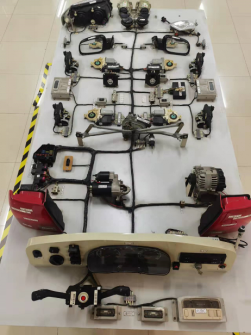 汽车电器实验室现有仪器设备7台套,总价值20万余元,使用面积约110平方米。主要仪器设备有:车载控制器局域网(CAN-BUS)教学实验系统、汽车电器万能试验台、帕萨特B5全车电器实训台、自动空调教学测控实验系统、冷媒回收加注机、汽车专用示波器、醛电池检测仪等