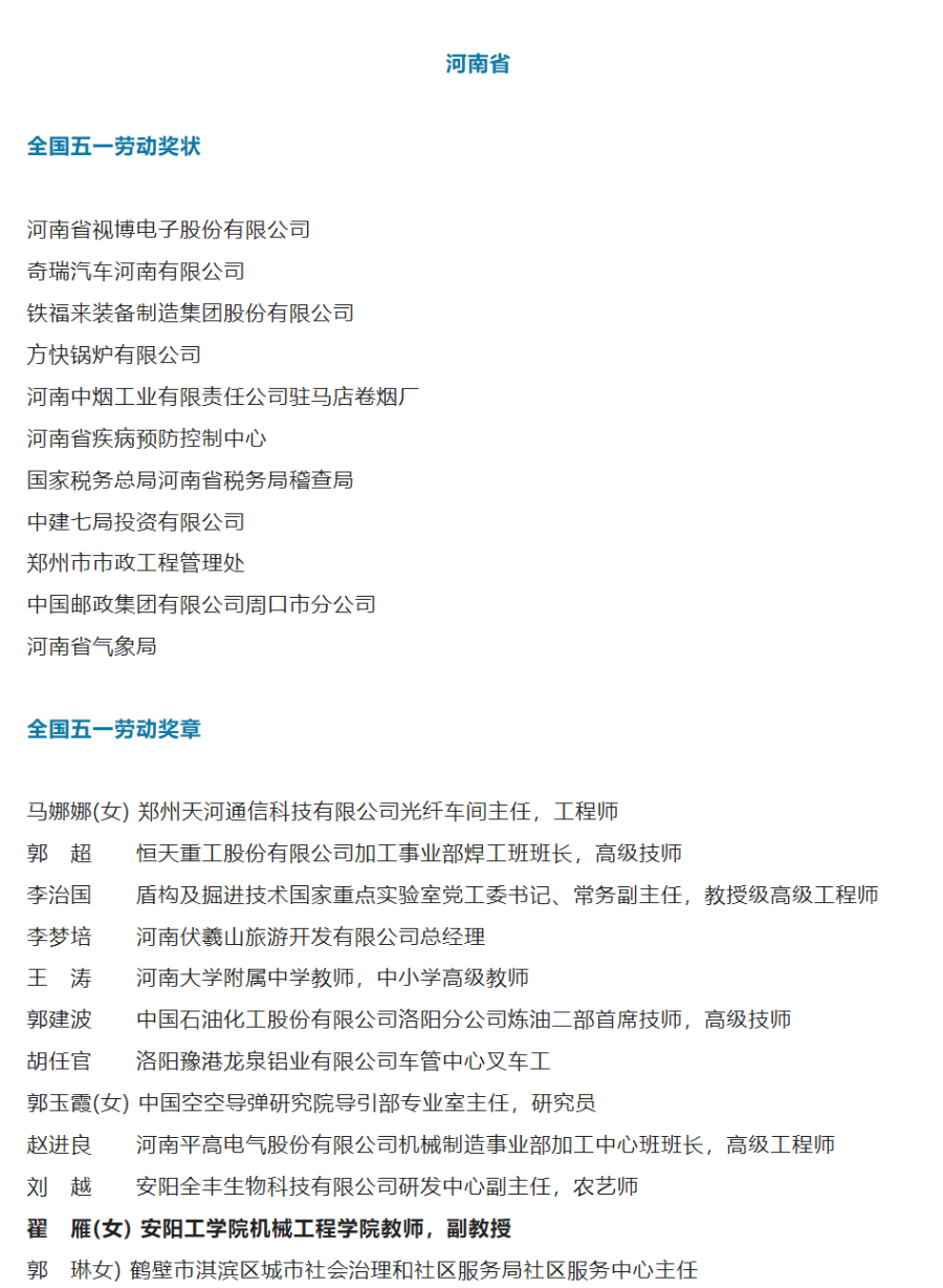 全国五一劳动奖名单公示!公司教师、副教授翟雁入选