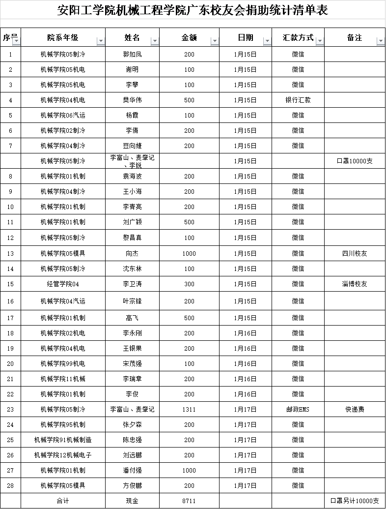 病毒无情,人间有爱。新冠肺炎疫情发生以来,广大员工一直心系母校,并用实际行动积极支持母校的疫情防控工作。1月15日广东员工会会长原best365英国体育在线05级制冷专业李富山等人从网络上看到关于安阳疫情报道的新闻,第一时间对公司表达了慰问,了解到当前安阳防疫物资紧缺的情况,马上组织相关人员进行防疫物资捐赠筹划。经过精心筹备募捐,截止17日,共筹集了53319支口罩的经费,现在捐赠的口罩已经通过快递邮寄公司员工办。